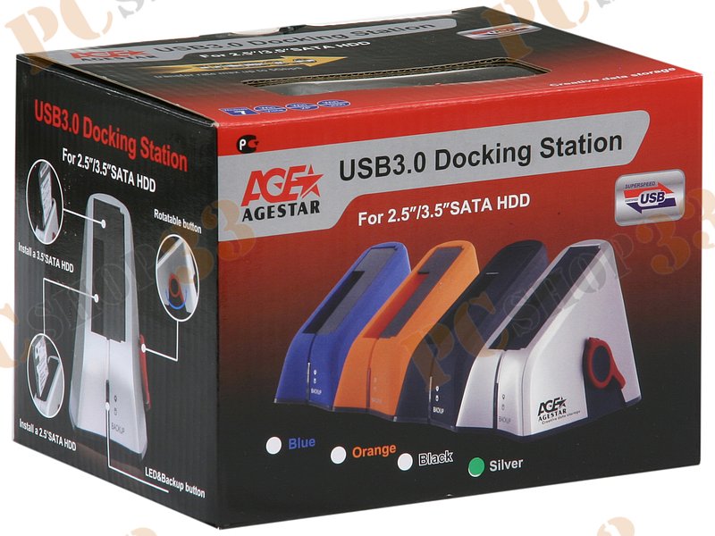 Док-станция Agestar 3UBT для 2.5/3.5 SATA HDD, серебр.-черный (USB3.0)
