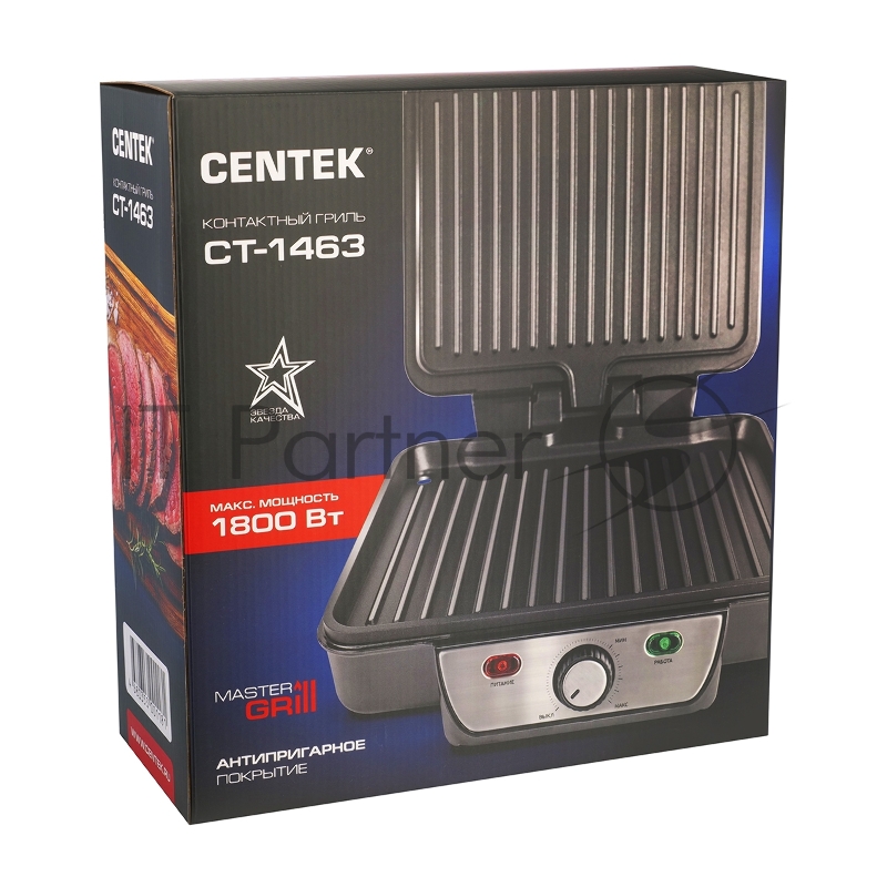 Контактный гриль Centek CT-1463 1800 Вт 2 жаровни <280х230мм> антипригар, нерж отдел, max 240°С