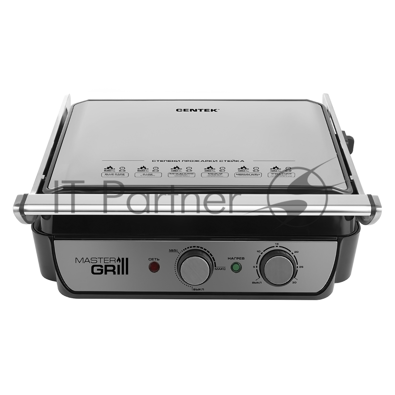 Контактный гриль Centek CT-1466 2000 Вт <340x230мм> раскрытие на 180°, антипригар, таймер, max 240°С