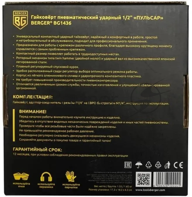 Гайковерт Berger ПУЛЬСАР 120л/мин черный