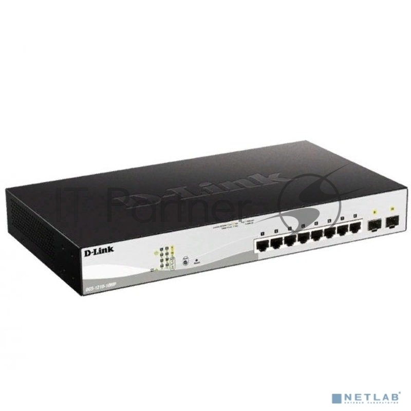 Управляемый L2 коммутатор D-Link DGS-1210-10MP/FL2A с 8 портами 10/100/1000Base-T и 2 портами 1000Base-X SFP (8 портов PoE 802.3af/at, PoE-бюджет 130 Вт)