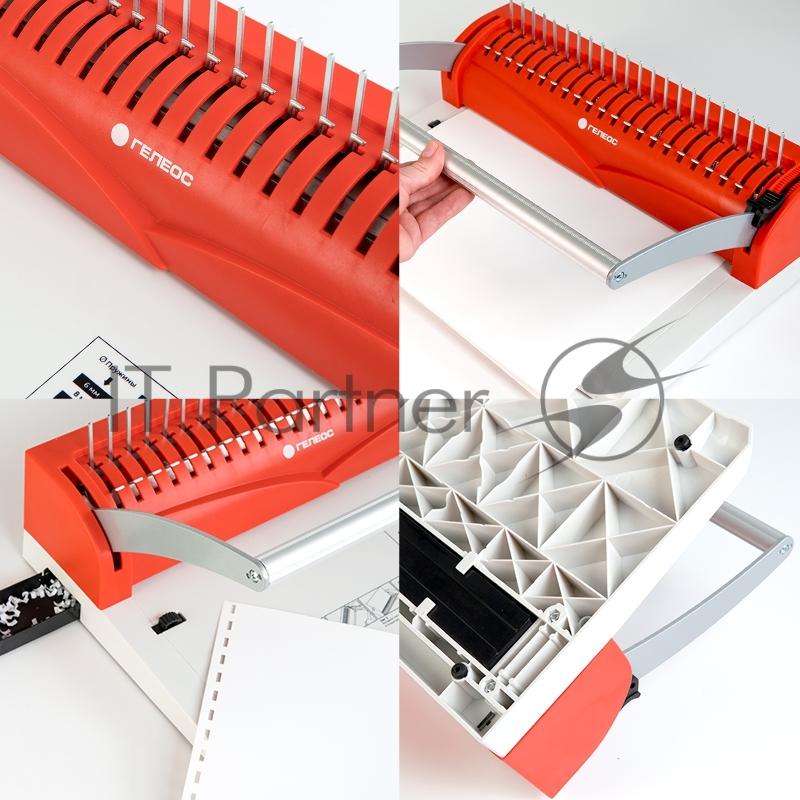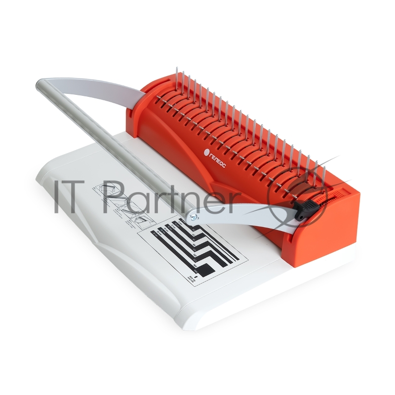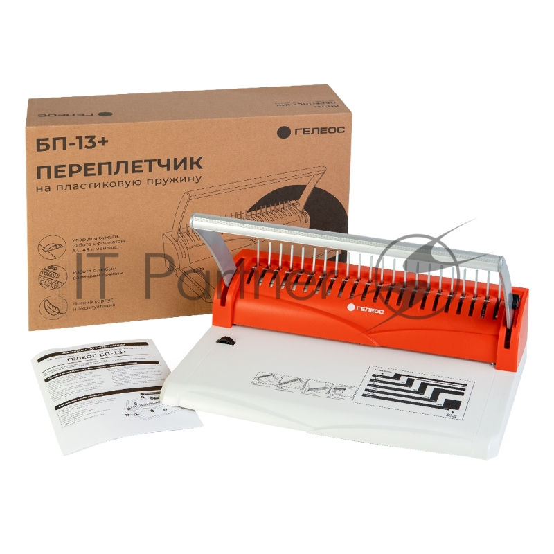 Переплетчик ГЕЛЕОС БП-13+ бело-красный на пластиковую пружину, А4, ручная перфорация 13 листов, переплет макс до 500 л., глубина перфорации 2 мм