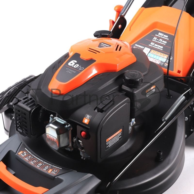 Газонокосилка бензиновая PATRIOT PT 56LS самоход, 56 см, 6 л.с.224сс, 4 в 1 (трав 60л комби + боковой выброс + мульчирование + задний выброс), 7 уровней, мет. дека