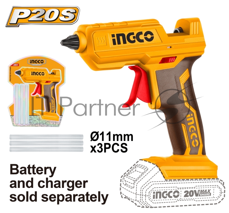 Аккумуляторный клеевой пистолет Li-Ion Ingco CGGLI2001