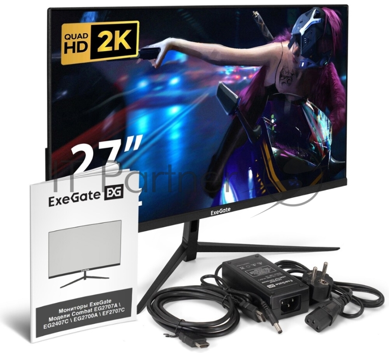 Монитор игровой 165 Гц 27 ExeGate Combat EG2700A (IPS LED Grade A+, 2K, 2560x1440@165Гц (WQHD), 16:9, 300cd/m2, 1000:1, 178°/178°, 1ms, HDMI, DisplayPort, audio-out, Flicker-free, FreeSync, Low Blue Light, кабель HDMI 1.5м, VESA 100x100, регулировка