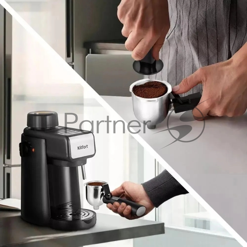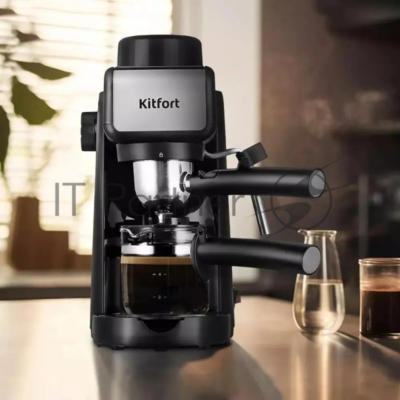 Кофеварка рожковая Kitfort КТ-7259 800Вт черный/нержавеющая сталь