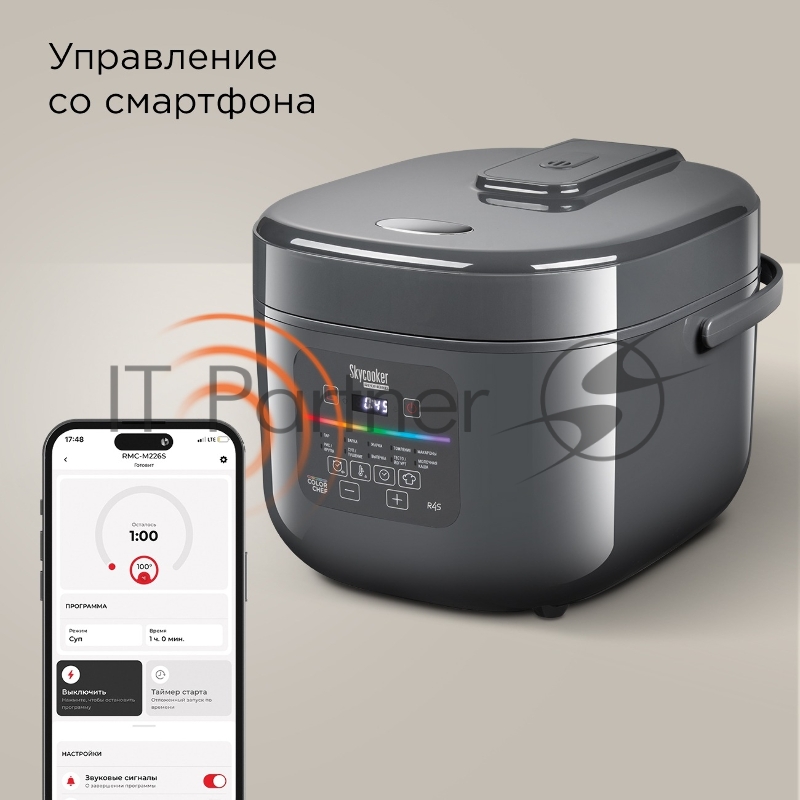 Мультиварка REDMOND MC100S 860 Вт, 5 л, 12 программ, чёрный/ металлик