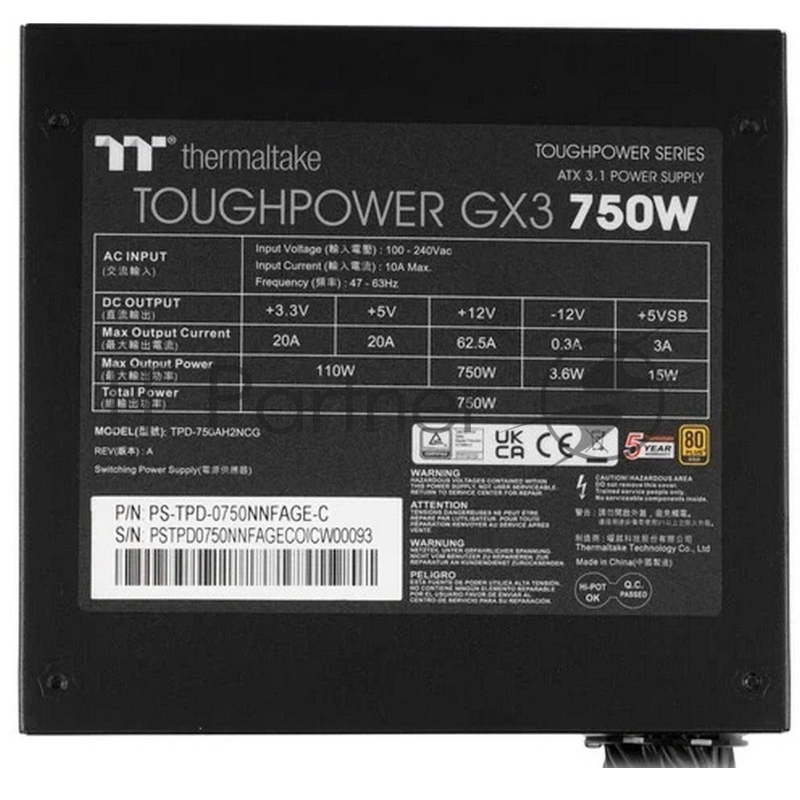 Блок питания Thermaltake Toughpower GX3 750W Non Modular/Non LightFull/Range Analog/80 Plus Gold/EU/Non JP CAP/A11 Flat CablesGen 5