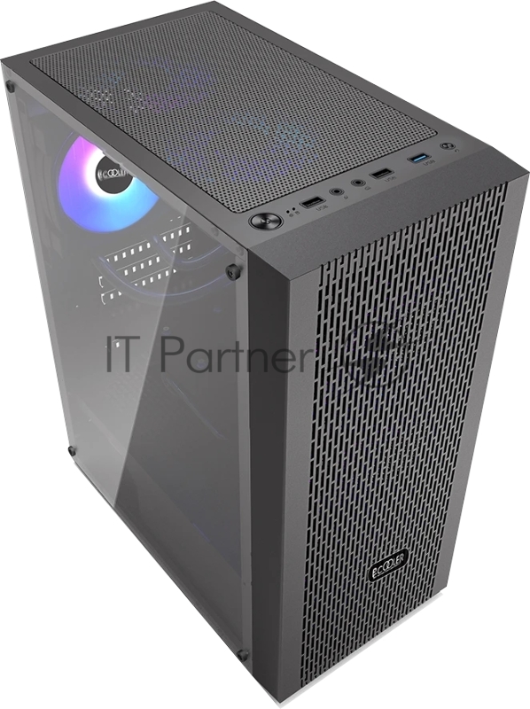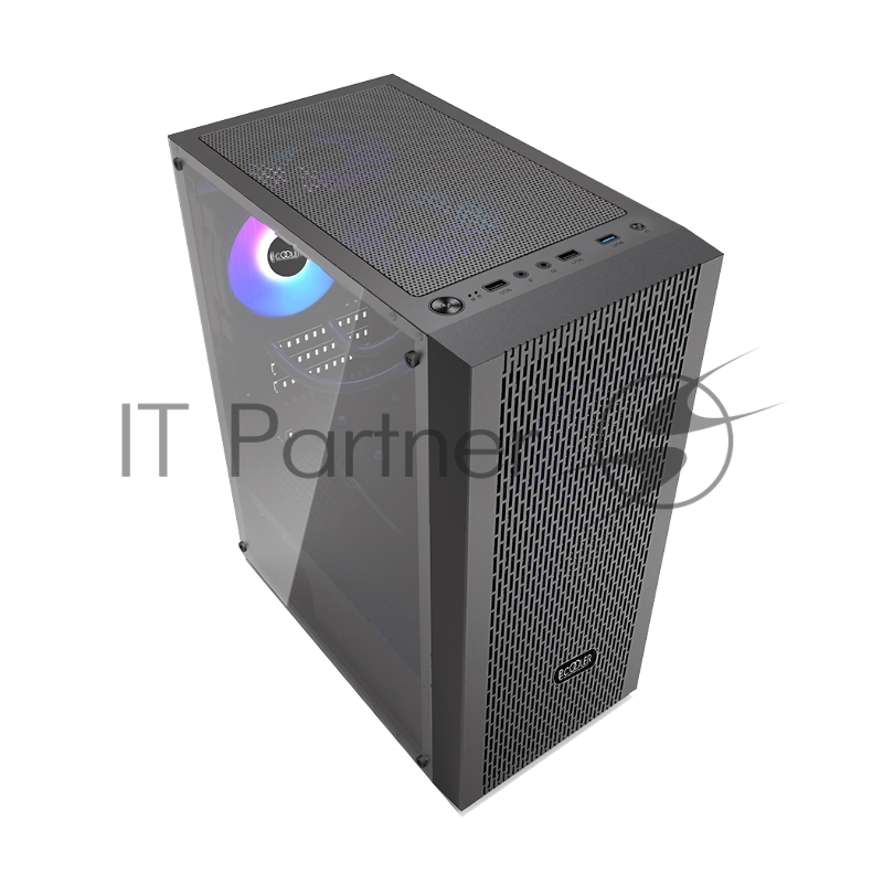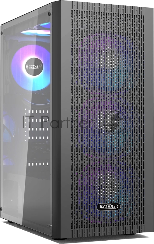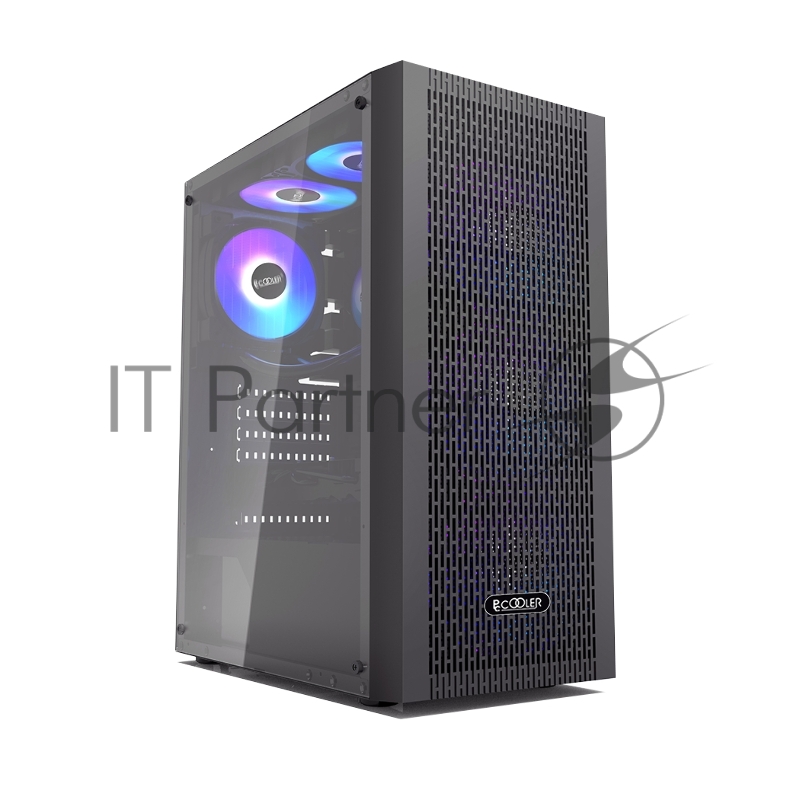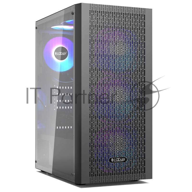Корпус без блока питания/ PCCOOLER MA100 MESH BK, Mesh Mid Tower, Black, TG, 0.4 SPCC, 3x120mm ARGB ATX, mATX, mITX 160/310/180mm 2x2.5, 2x3.5, 7xPCI 1xUSB-A 3.0, 2xUSB-A 2.0 360x200x446mm