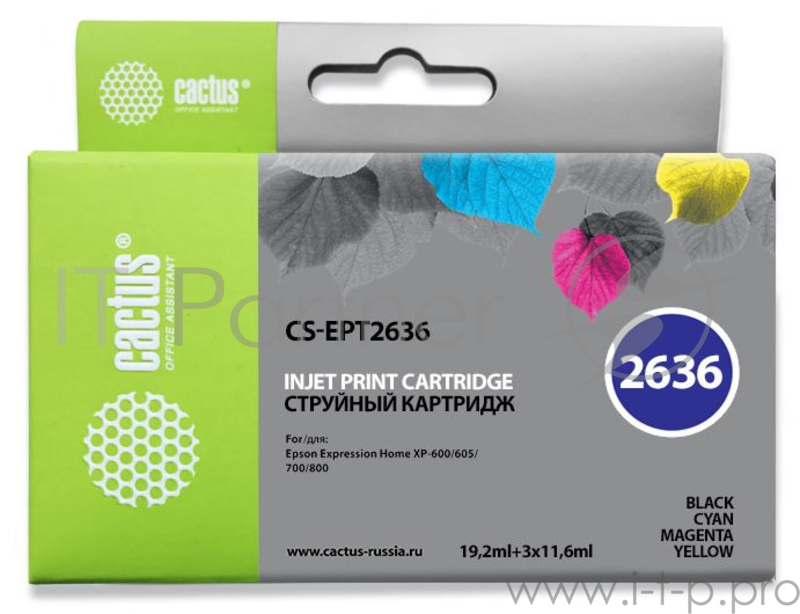 Картридж струйный Cactus CS-EPT2636 черный/голубой/пурпурный/желтый набор карт. для Epson Expression