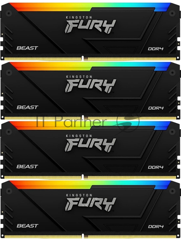 Память оперативная/ Kingston 64GB 2666MT/s DDR4 CL16 DIMM (Kit of 4) FURY Beast RGB