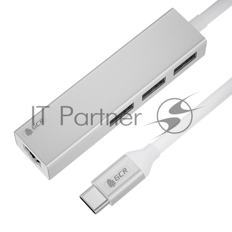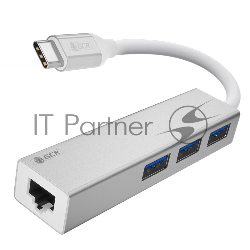 USB HUB TypeC 4в1 разветвитель на 3 порта USB 3.0 + сетевой адаптер Gigabit Ethernet RJ-45, серебристый, алюминиевый корпус, GCR-54603