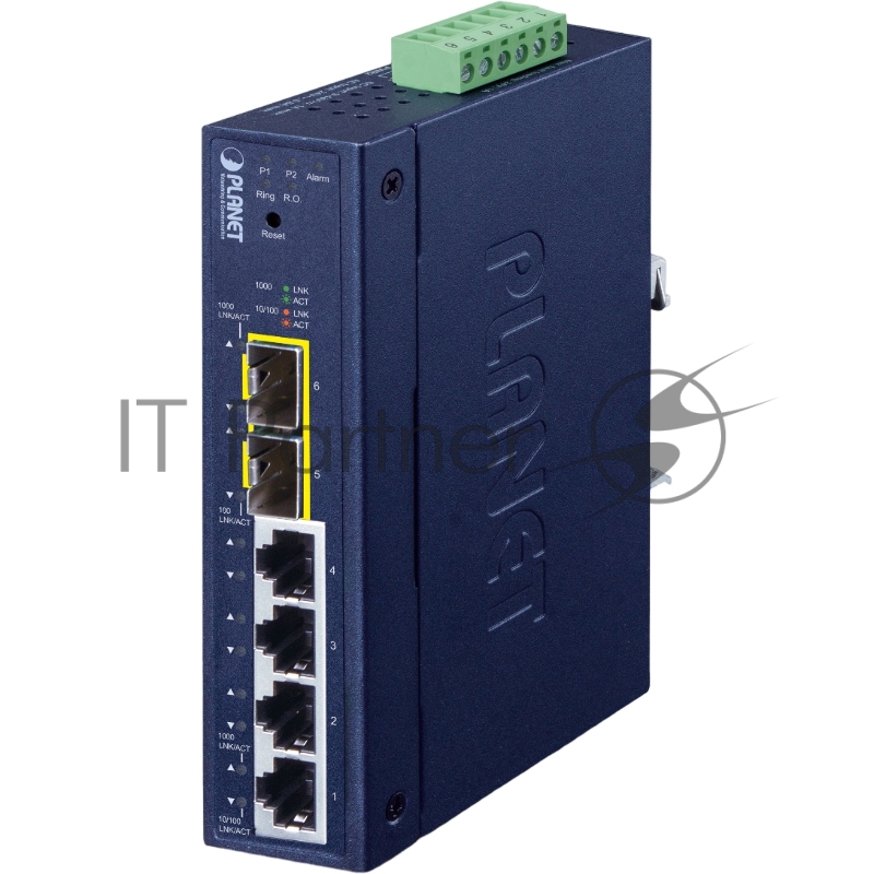 коммутатор/ PLANET IGS-4215-4T2S IP30 Industrial L2/L4 4-Port 10/100/1000T + 2-Port 100/1000X SFP Managed Switch (-40~75 degrees C, dual redundant power input on 9~48VDC/24VAC terminal block, supports ERPS Ring, CloudViewer app, MQTT and Cybersecurit