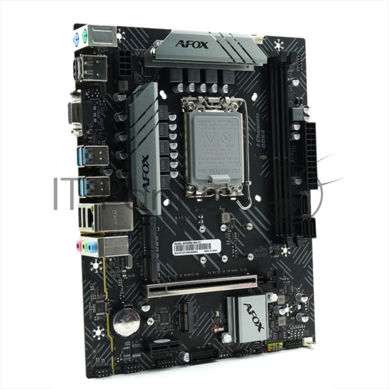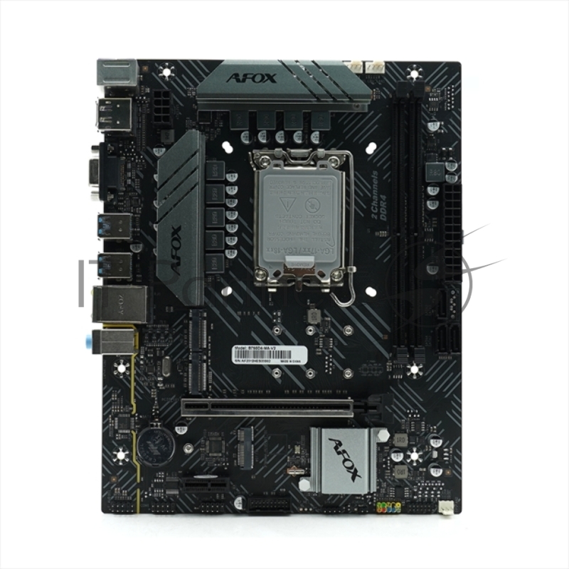 Материнская плата AFOX INTEL B760 s1700, 2xDDR5(64GB), 1xPCIe 4.0x16, 1xPCIe x1, 1xMPCIe, 1xHDMI, 1xD-Sub, 1xLAN(1GbE), 3xSATA, 1xM.2, 4xUSB 3.0, 2xUSB 2.0, 2xPS/2, mATX