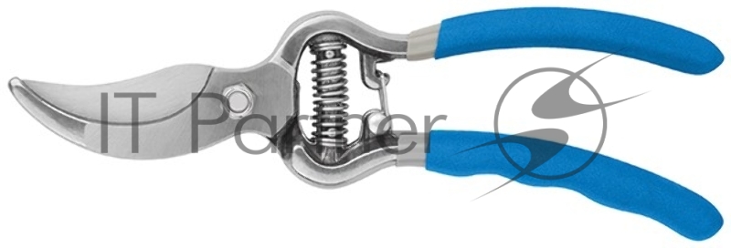 Секатор, режущие кромки внахлест, усиленная пружина, цельнокованый, ПВХ изогнутые ручки 215 мм