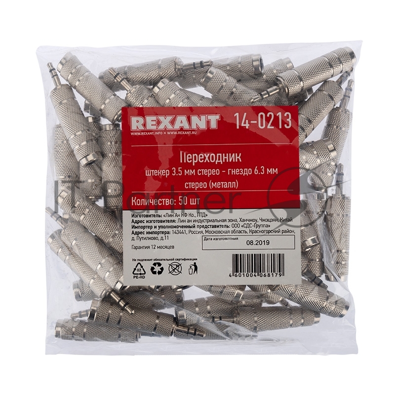 Переходник штекер стерео 3,5 мм - гнездо стерео 6,3 мм, металл REXANT