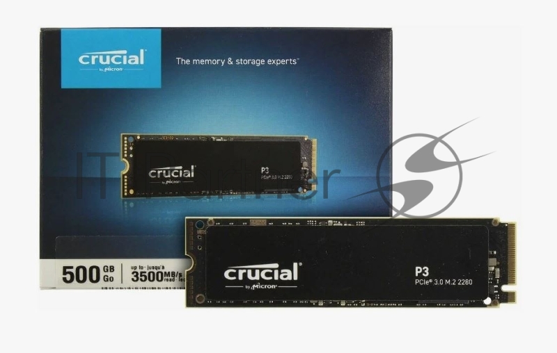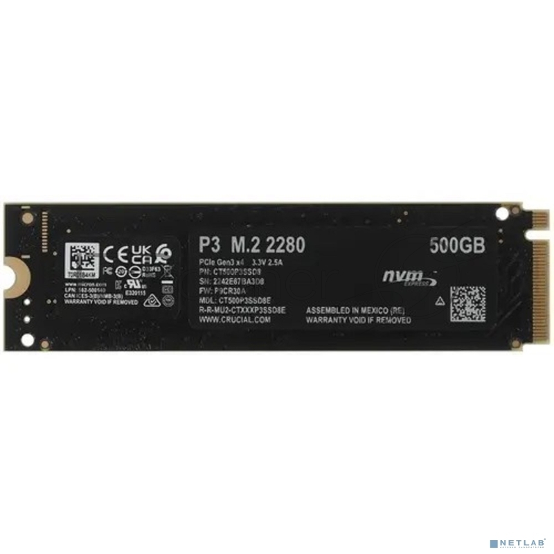 Накопитель SSD Crucial 500Gb M.2 P3 (PCI-E 3.0 x4, up to 3500/1900MBs, 3D NAND, NVMe, 110TBW, 22х80mm)