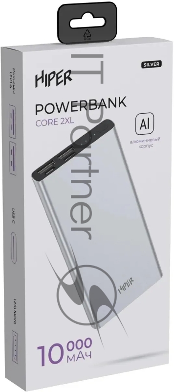 Внешний аккумулятор HIPER CORE 2XL Metal серебристый (10000 мАч)