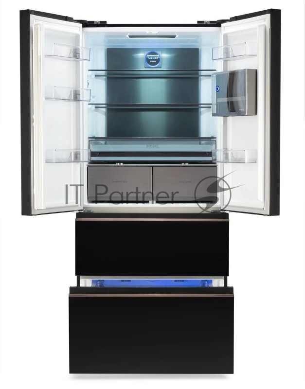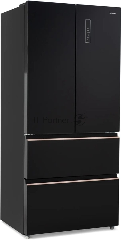 Холодильник Hyundai CM55043F черный стекло 3-хкамерн, 354/186, морозилка снизу, No Frost, Side by Side