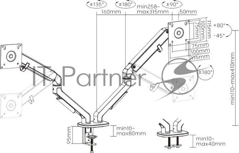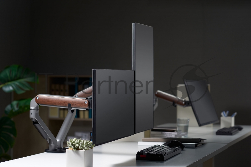 Кронштейн для мониторов Ultramounts UM735WD серый/коричневый 17-27 макс.7кг крепление к столешнице поворот и наклон
