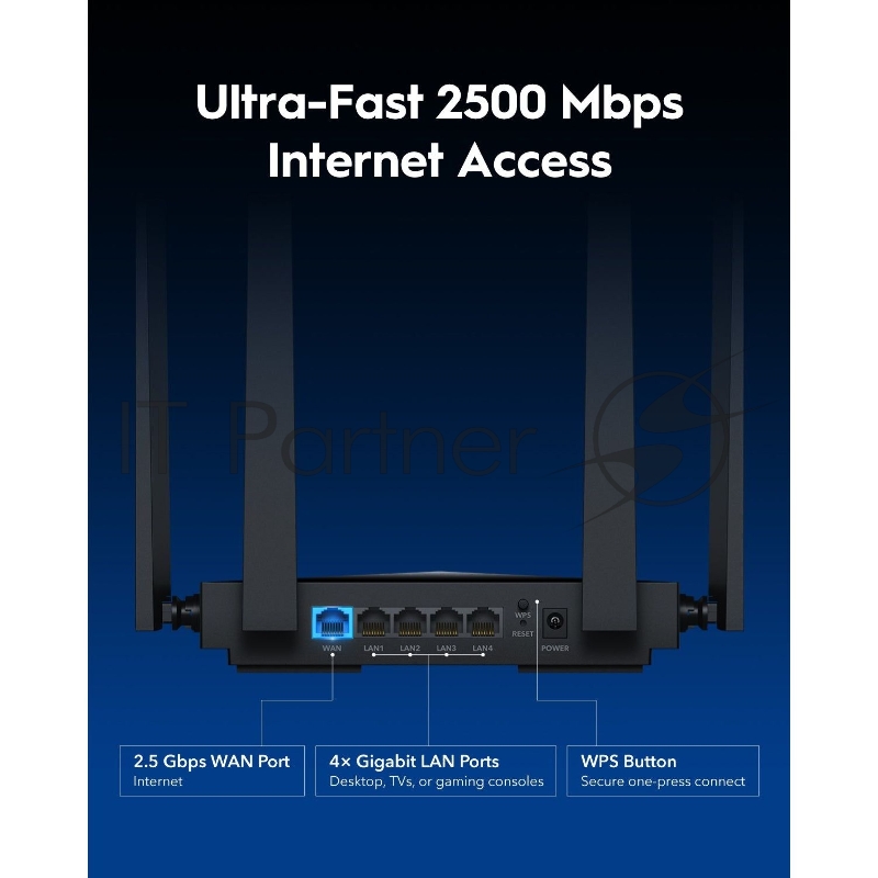 Маршрутизатор Cudy BE3600 2.5G Dual Band Wi-Fi 7 Mesh Router, Chipset Broadcom, 802.11be/ax/ac/a/b/g/n, 2882Mbps at 5GHz + 688Mbps at 2.4GHz, 1 x 2.5Gbps WAN Port, 4 x 10/100/1000Mbps Ports, 4 x 5dBi fixed antennas, WiFi router/AP/ Repeater/WISP Mode