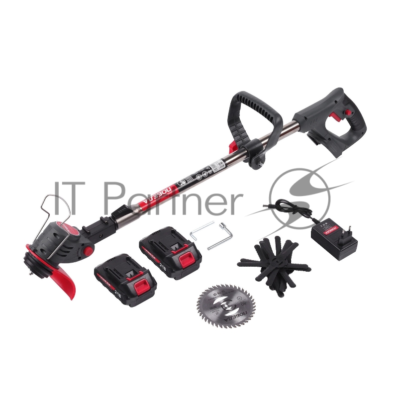 Триммер аккумуляторный Победа ТА 202, 20/21В, с 2 акб 1,5Ач и зу, макс 145мм, пластик. ножи(10шт)+ мет. диск 40Т, телескоп