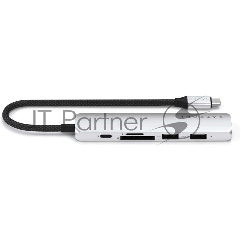 USB-хаб Satechi 6-in-1 USB-C Slim Multiport Adapter (Type-C, HDMI, 2x Type-A, SD, microSD), до 75 Вт, Серебристый Док-станция ST-P6SS