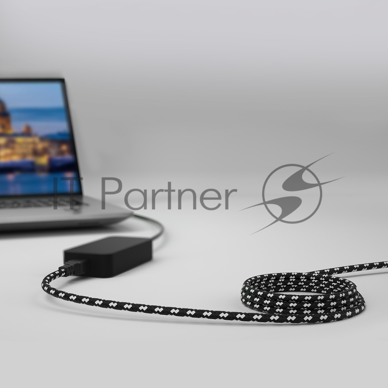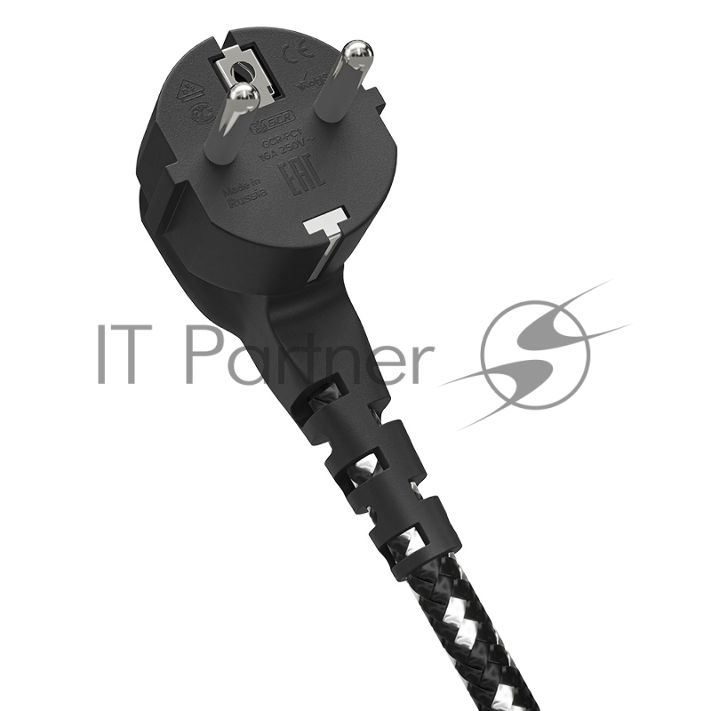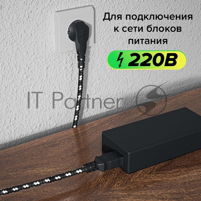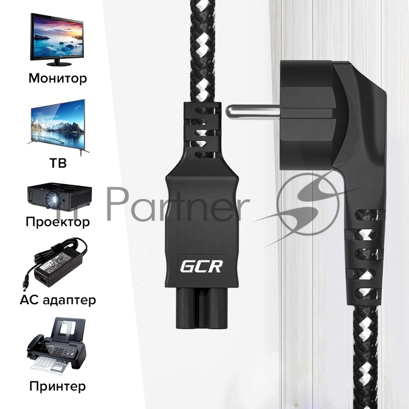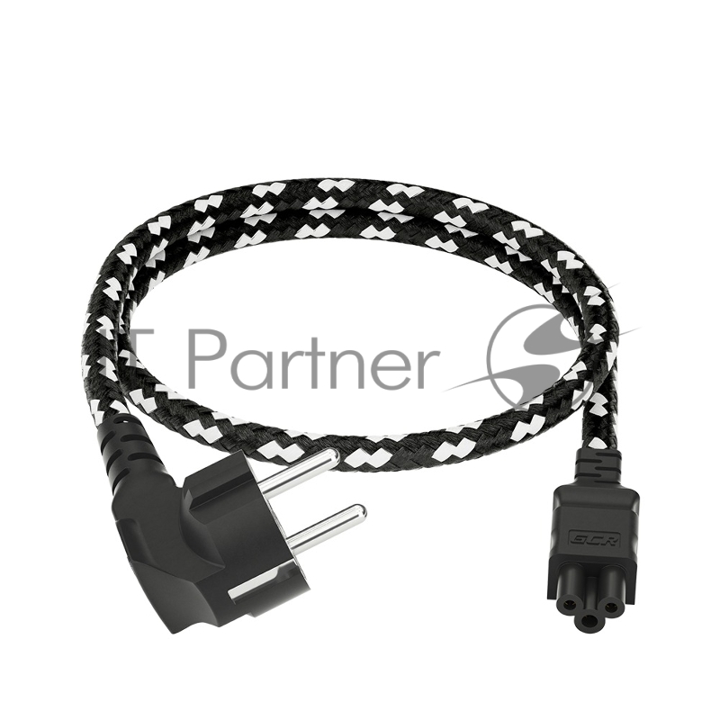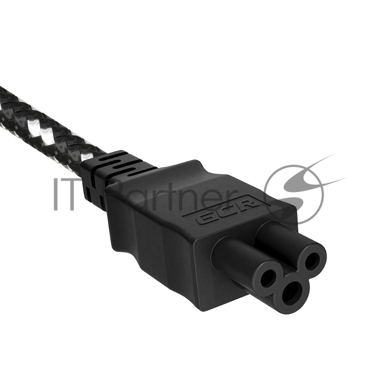 Кабель питания GCR евровилка угловая Schuko - С5, 3*0,75mm, 0.5m, текстиль, черно-белый