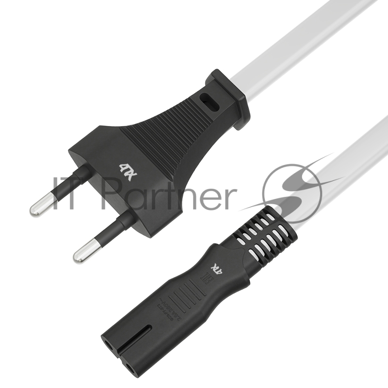 Кабель питания 4PH 1.5m, плоская вилка - C7, белый, черные коннекторы, 2*0,5mm, 4PH-R90371