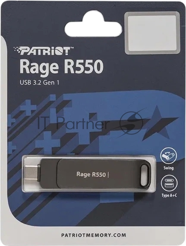 Флеш Диск Patriot 32Gb Rage R550 USB 3.2 Gen 1 Swing Type-A+C black