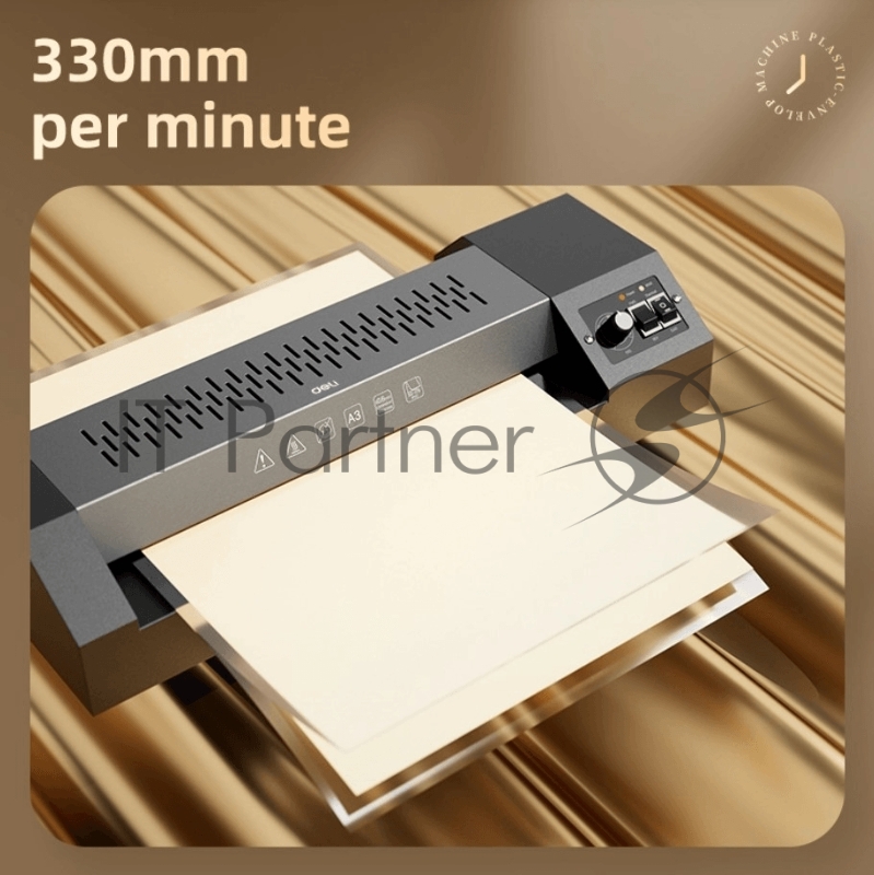 Ламинатор Deli ET131 A3, холодный и термич.способ ламинирования, скорость 330 мм/мин, прогрев 3мин., 50-175 мм, черный