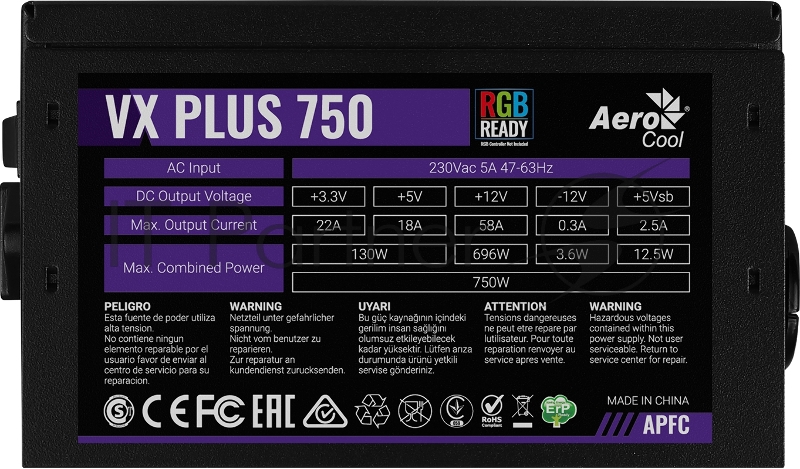 Блок питания Aerocool / Formula VX PLUS 750 RGB, 750Вт, 120мм, черный