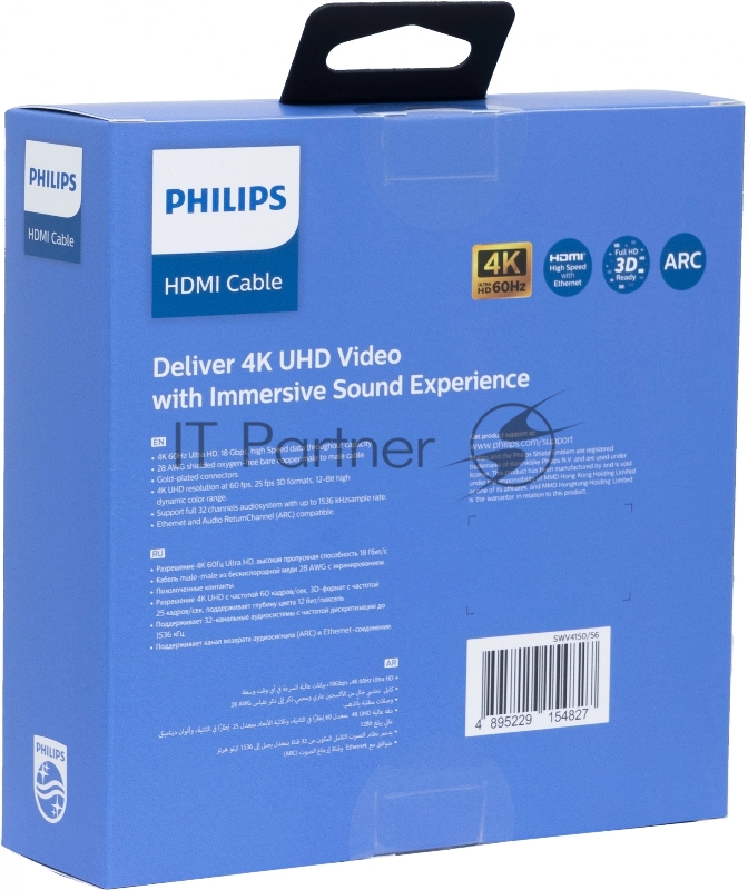 Кабель аудио-видео Philips 4K 60Гц Ultra HD HDMI (m)/HDMI (m) 5м. позолоч.конт. черный (SWV4150/56)