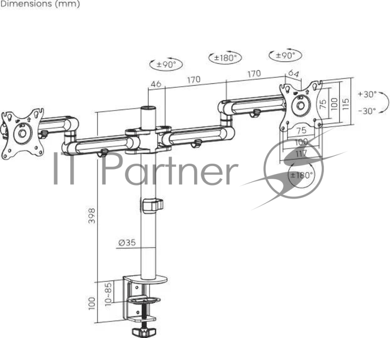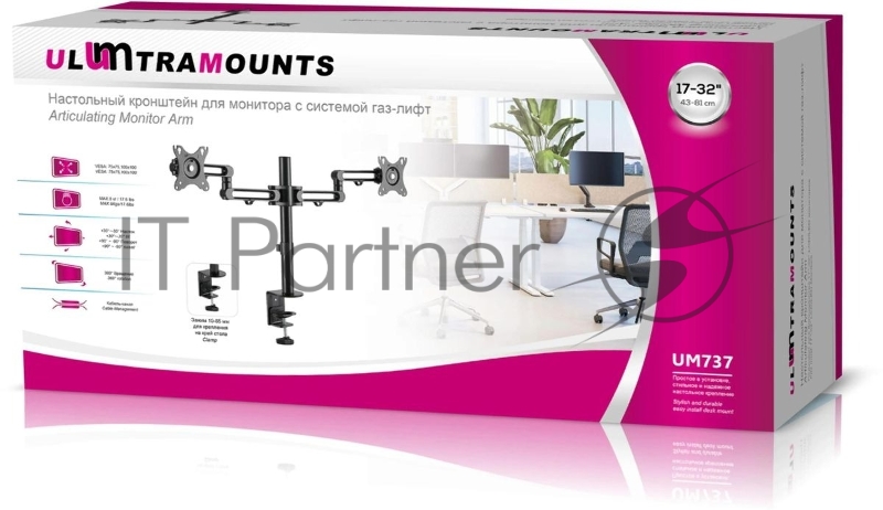 Кронштейн для мониторов Ultramounts UM737 черный 17-32 макс.8кг крепление к столешнице поворот и наклон
