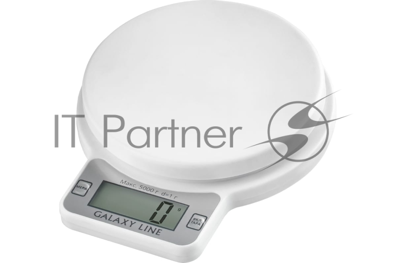 Кухонные весы Galaxy Line GL 2814, белый, пластик, ЖК-дисплей, максимально допустимый вес 5 кг, цена деления 1 г