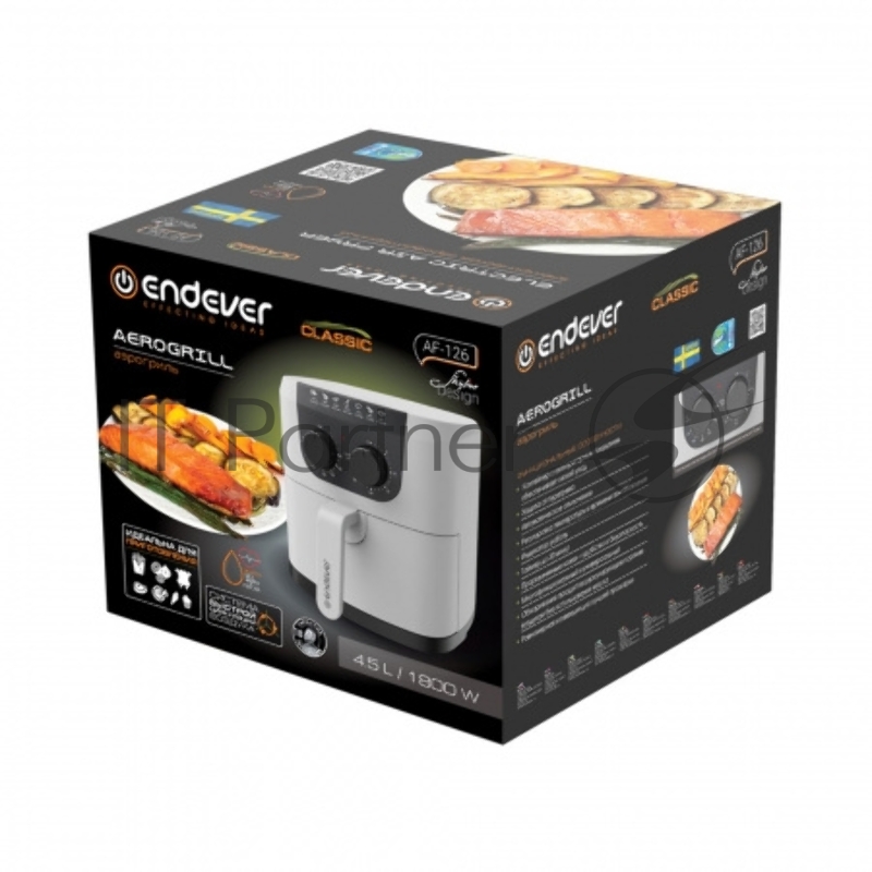 Аэрогриль Endever Skyline AF-126, белый, мощность 1800 Вт, объем 4,5 л, механическое панель управления, температура 80-200 С, 2 шт/уп.