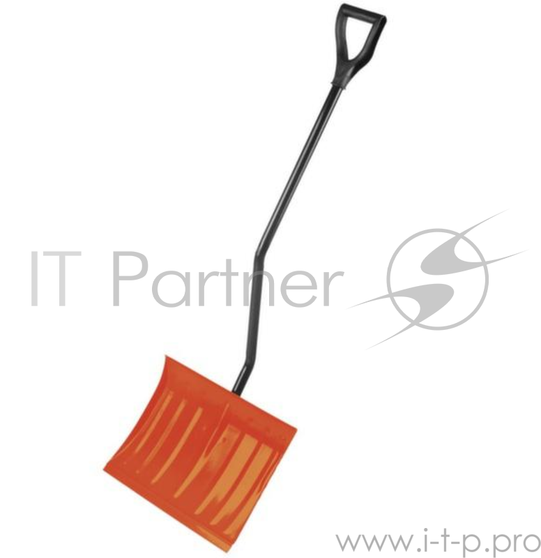 Грабли, Вилы, Лопаты Лопата снеговая стальная с металлическим черенком и V-образной ручкой, 465мм, оранжевая, СИБИН 421849