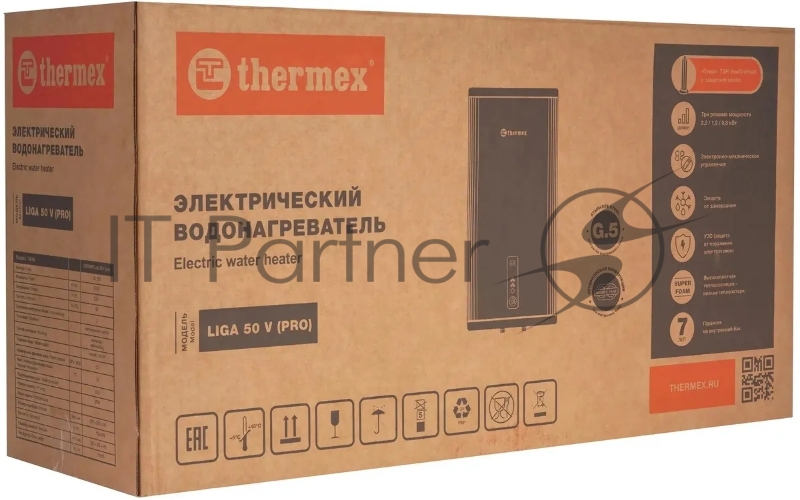 Водонагреватель Thermex Liga 50 v (pro) 2кВт 50л электрический настенный/коричневый