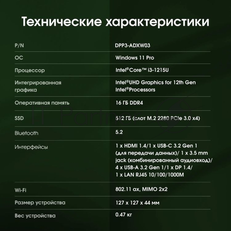 Неттоп Digma Pro Minimax U1 i3 1215U (1.2) 16Gb SSD512Gb UHDG Windows 11 Pro GbitEth WiFi BT 60W темно-серый/черный (DPP3-ADXW03)