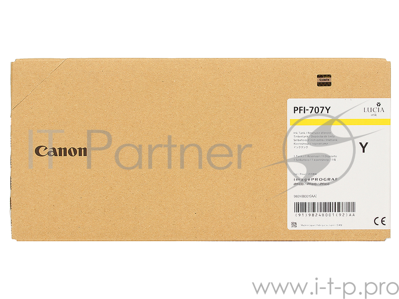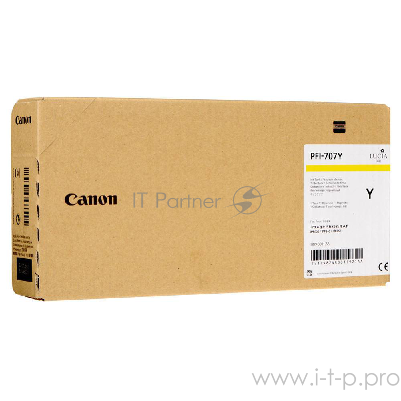 Картридж Canon PFI-707 Y для плоттера iPF830/840/850. Жёлтый. 700 мл.