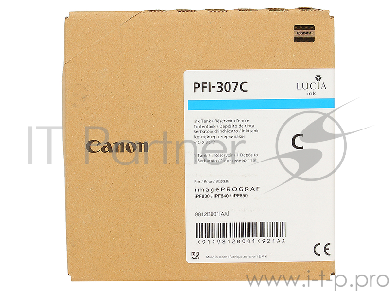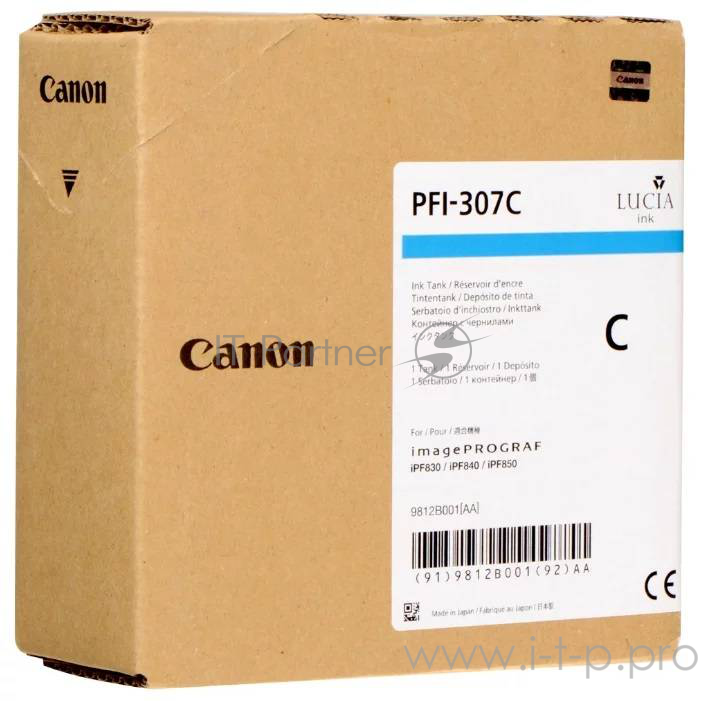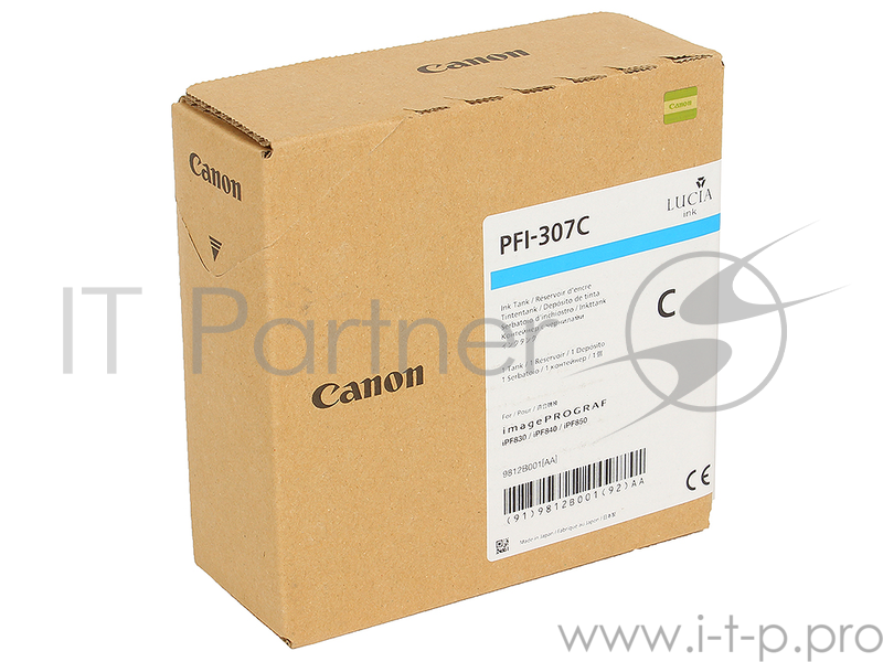 Картридж Canon PFI-307 C для плоттера iPF830/840/850. Голубой. 330 мл.