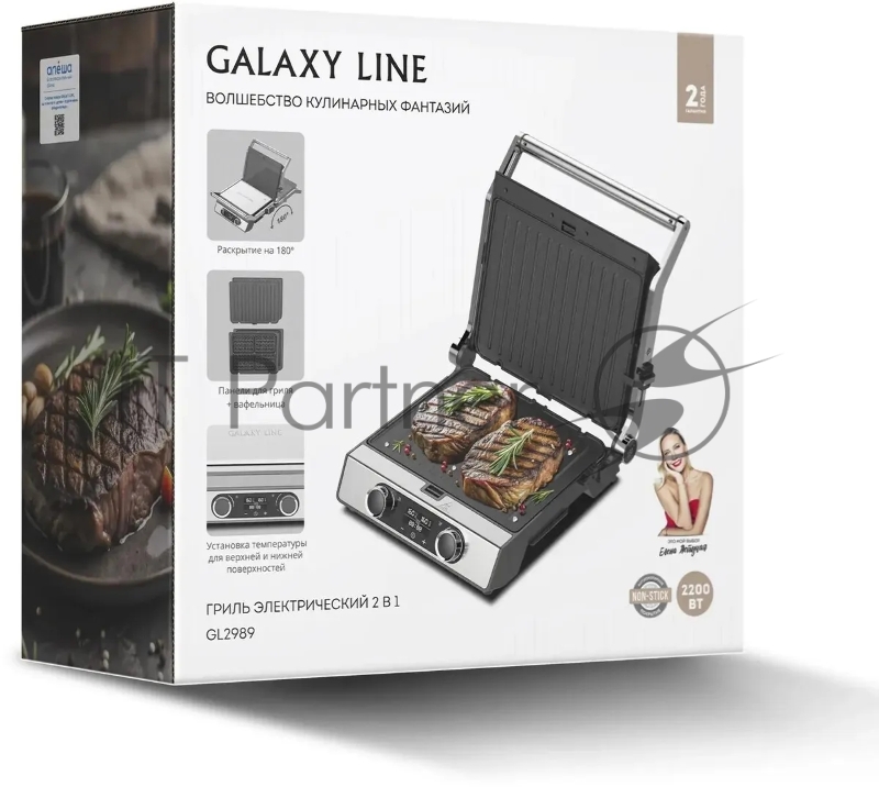 Электрогриль Galaxy Line GL2984 2200Вт серебристый