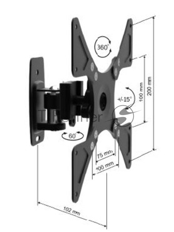Кронштейн MD 3340 для 26-42 черн.(Консольный 3D кронштейн с наклоном и поворотом для LCD до 42, Нарузка до 25 кг., VESA 100/200, 3 степени свободы: Угол наклона +/-15°, Угол поворота 60° и Вращение 360° и смещение 120мм.Расстояние между телевизором и