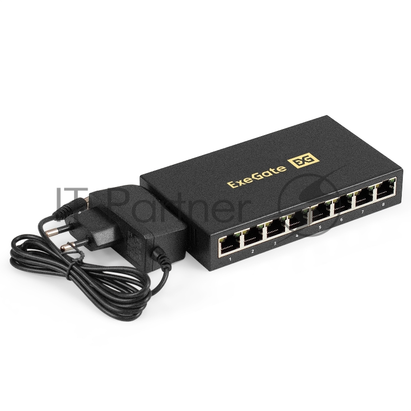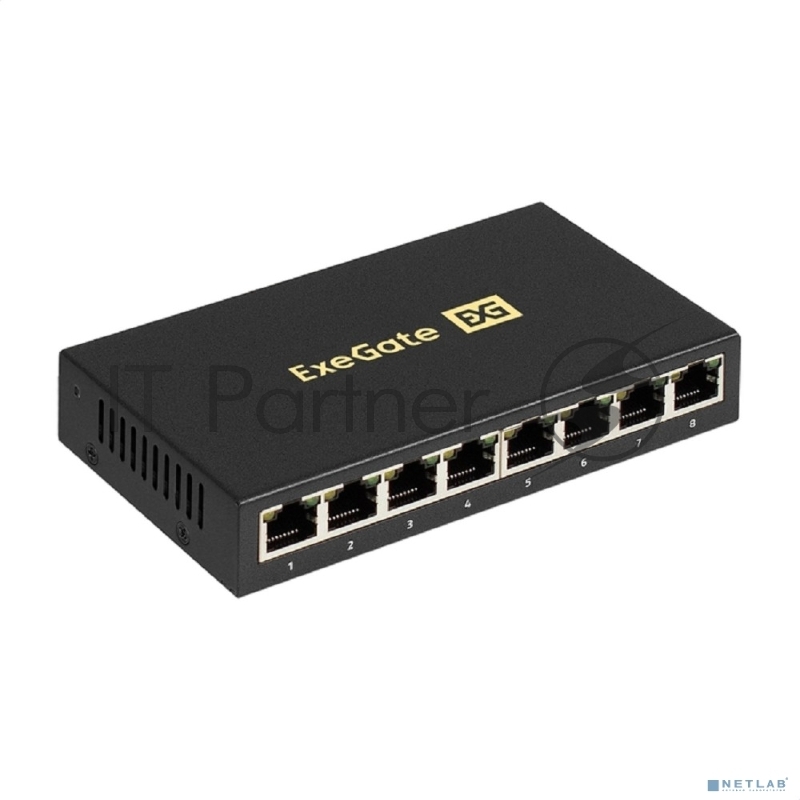 Коммутатор неуправляемый ExeGate EDGS-1008D (8-портовый гигабитный UTP 10/100/1000 Base-T, металлический корпус, с функцией энергосбережения (Green Ethernet Technology), настольный/настенный))