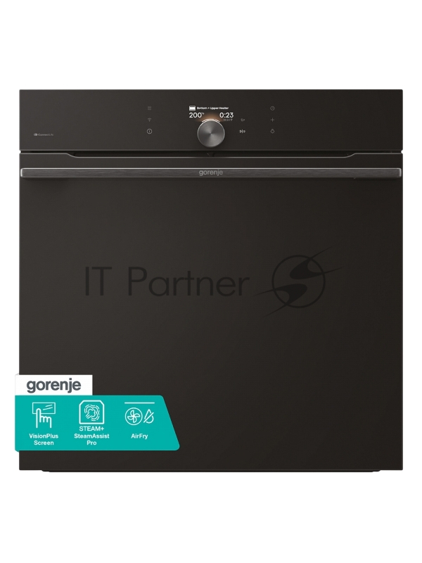 Встраиваемая электрическая духовка Gorenje BP6138B, объем 77 л, макс. температура 320 градусов, сенсорное/поворотное управление, Wi-Fi, пиролитическая очистка, телескопические направляющие на одном уровне, термощуп, AirFry, автоматические программы,
