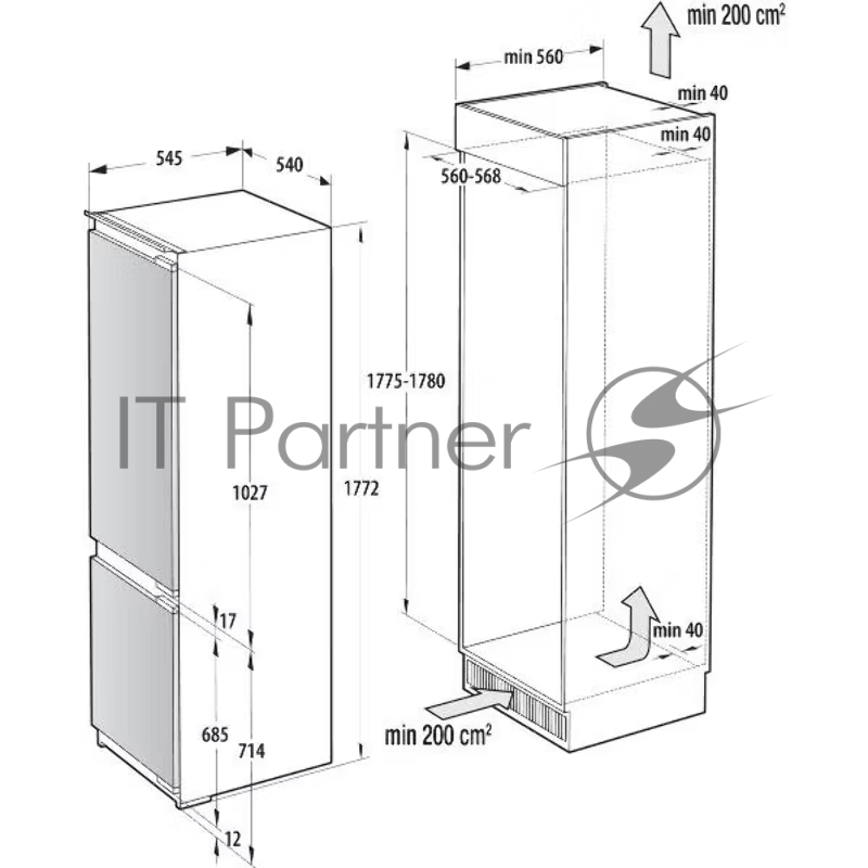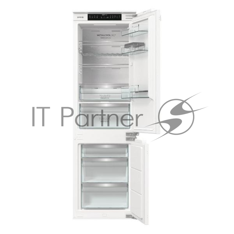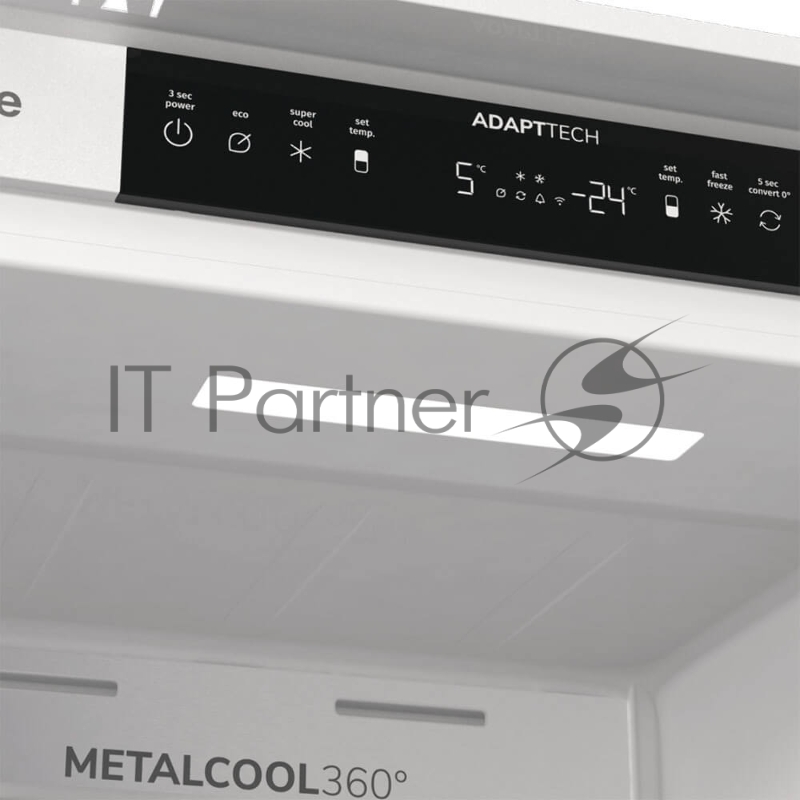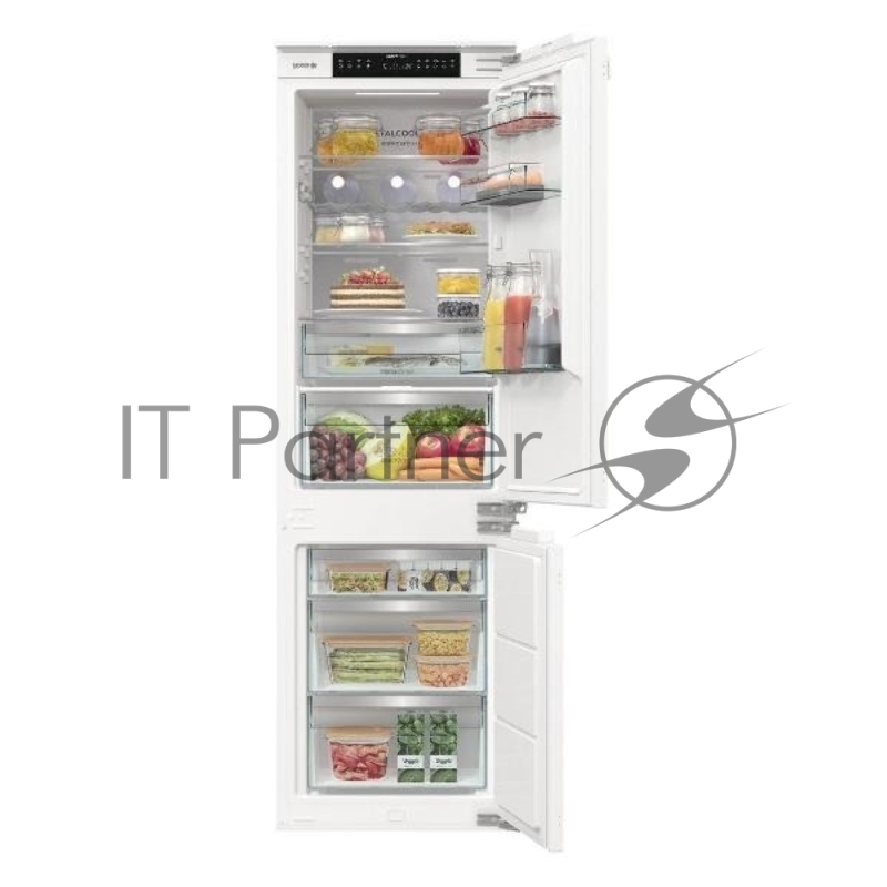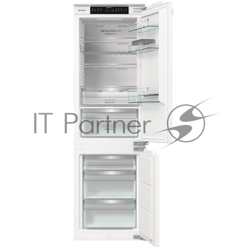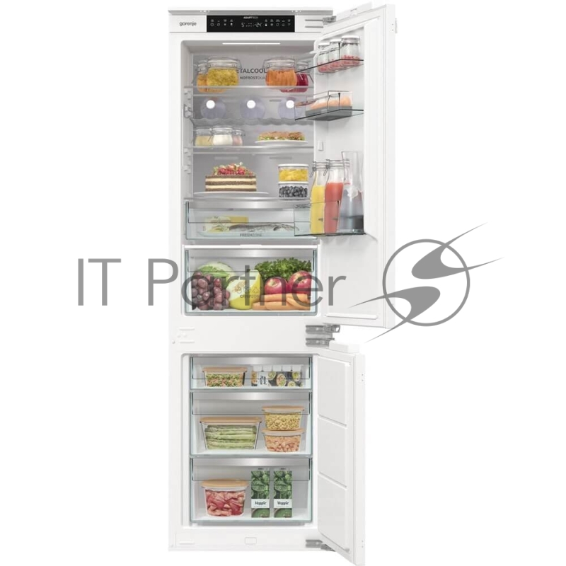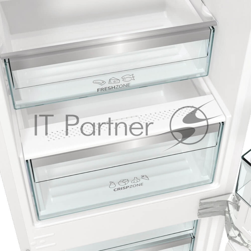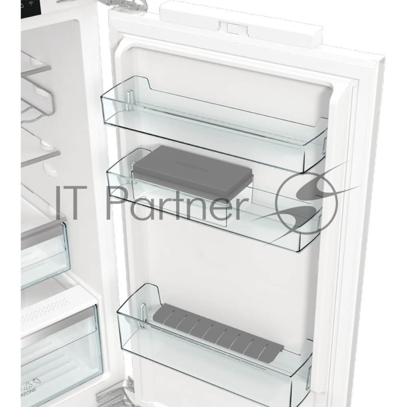 Встраиваемый холодильник Gorenje NRKI517E82WF, полезный объем 244 л, электронное управление, цифровой дисплей, автоматическое размораживание No Frost, быстрое замораживание, интенсивное охлаждение, зона свежести с контролем влажности, инверторный ком