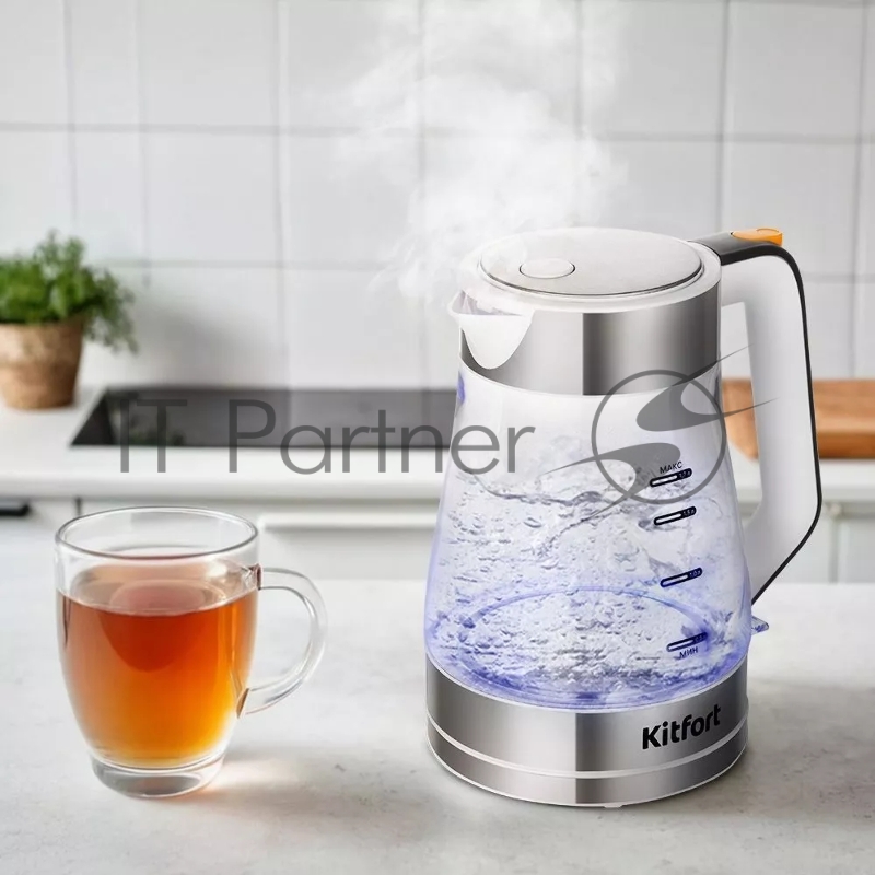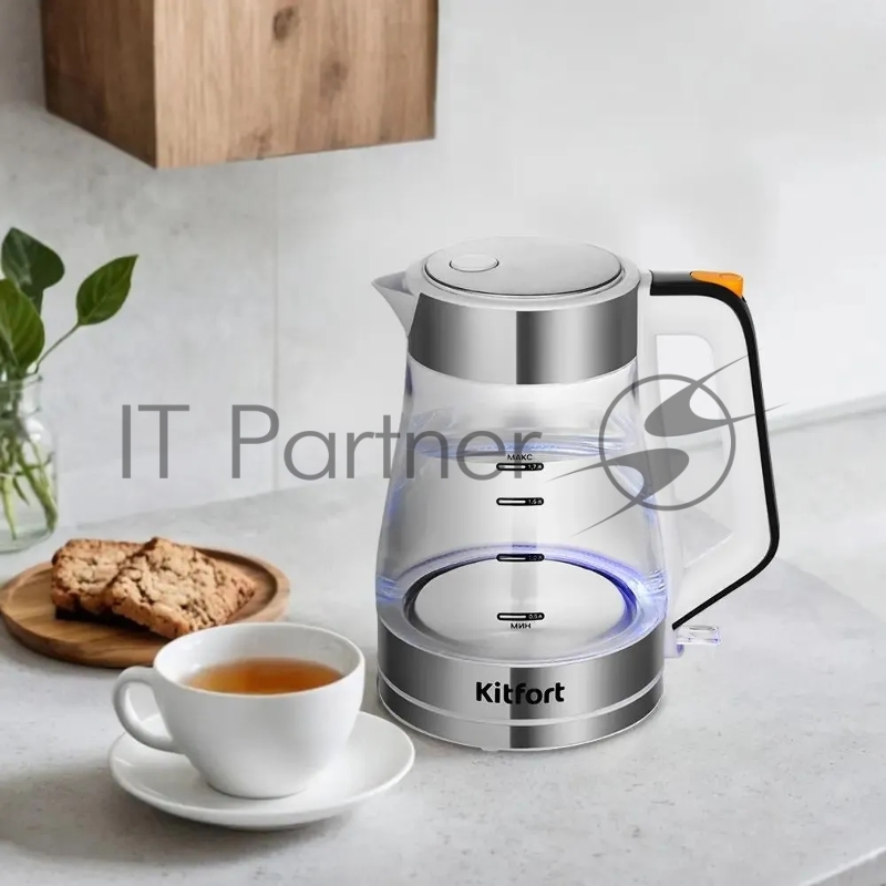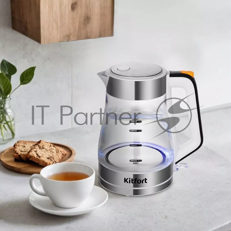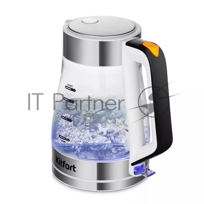 Чайник электрический Kitfort КТ-6626 1.7л. 2200Вт нержавеющая сталь/черный корпус: нерж.сталь/стекло
