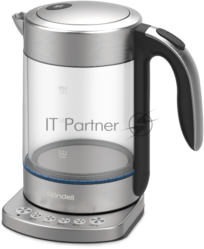 Чайник электрический Rondell RDE-WK888 1.5л. 2200Вт серебристый/прозрачный корпус: стекло
