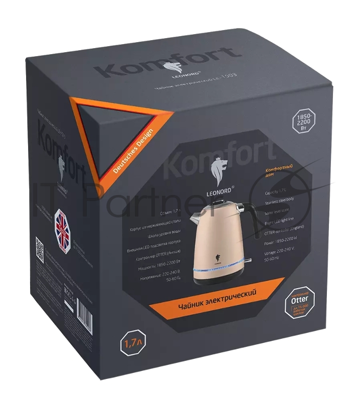 Чайник электрический LEONORD LE-1503 1,7 л, 2200 Вт, нержавейка, бронзовый