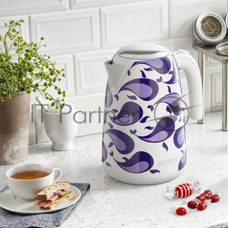 Чайник электрический Kitfort КТ-6768 1.7л. 2200Вт белый/фиолетовый корпус: металл/пластик